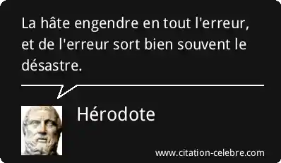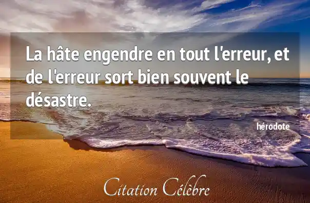 La hâte engendre en tout l'erreur, et de l'erreur sort bien souvent le désastre.