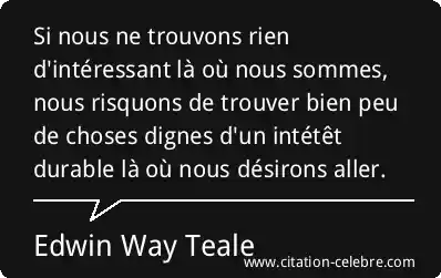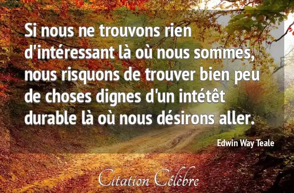Si nous ne trouvons rien d'intéressant là où nous sommes, nous risquons de trouver bien peu de choses dignes d'un intétêt durable là où nous désirons aller.
