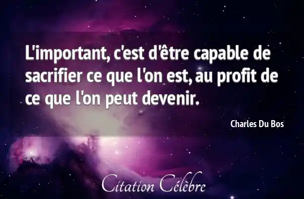 L'important, c'est d'être capable de sacrifier ce que l'on est, au profit de ce que l'on peut devenir.