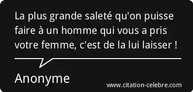La plus grande saleté qu'on puisse faire à un homme qui vous a pris votre femme, c'est de la lui laisser !