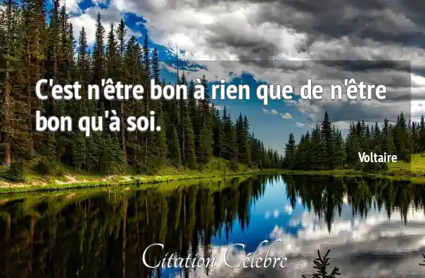 C'est n'être bon à rien que de n'être bon qu'à soi.