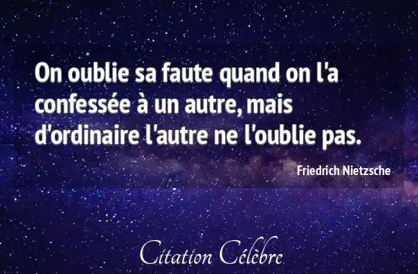 On oublie sa faute quand on l'a confessée à un autre, mais d'ordinaire l'autre ne l'oublie pas.