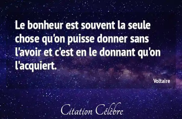 Le bonheur est souvent la seule chose qu'on puisse donner sans l'avoir et c'est en le donnant qu'on l'acquiert.