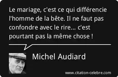 Le mariage, c'est ce qui différencie l'homme de la bête. Il ne faut pas confondre avec le rire... c'est pourtant pas la même chose !