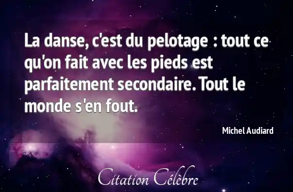 La danse, c'est du pelotage : tout ce qu'on fait avec les pieds est parfaitement secondaire. Tout le monde s'en fout.