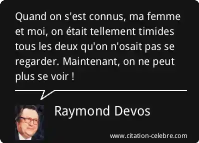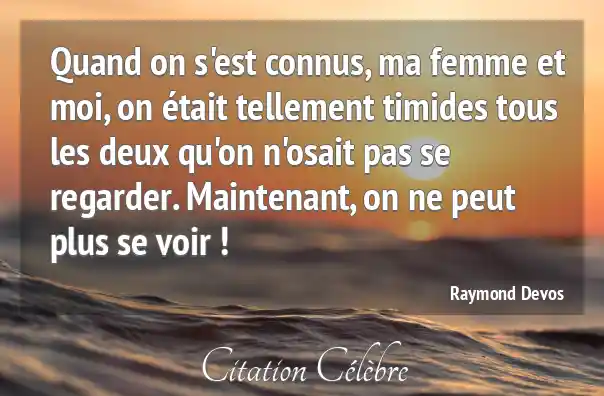 Quand on s'est connus, ma femme et moi, on était tellement timides tous les deux qu'on n'osait pas se regarder. Maintenant, on ne peut plus se voir !