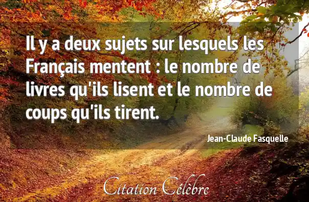 Il y a deux sujets sur lesquels les Français mentent : le nombre de livres qu'ils lisent et le nombre de coups qu'ils tirent.
