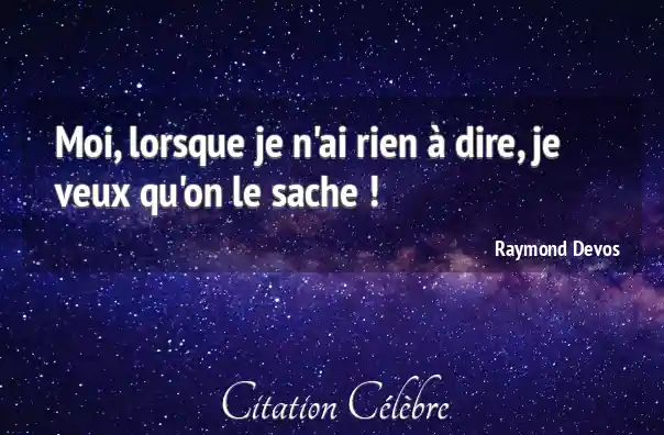Moi, lorsque je n'ai rien à dire, je veux qu'on le sache !