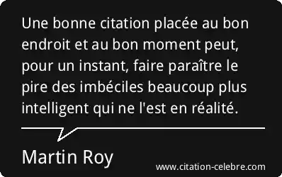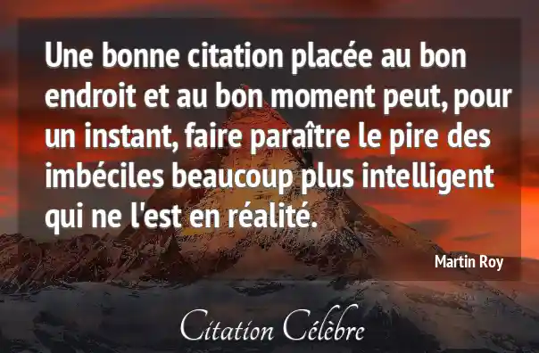 Une bonne citation placée au bon endroit et au bon moment peut, pour un instant, faire paraître le pire des imbéciles beaucoup plus intelligent qui ne l'est en réalité.