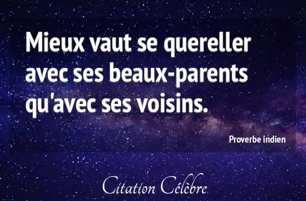 Mieux vaut se quereller avec ses beaux-parents qu'avec ses voisins.