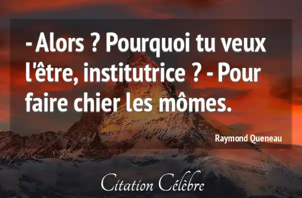 - Alors ? Pourquoi tu veux l'être, institutrice ? - Pour faire chier les mômes.