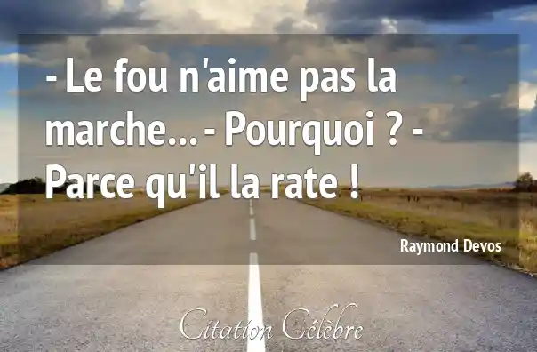 - Le fou n'aime pas la marche... - Pourquoi ? - Parce qu'il la rate !
