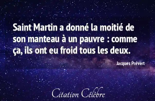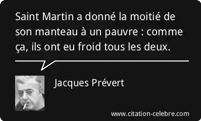 Saint Martin a donné la moitié de son manteau à un pauvre : comme ça, ils ont eu froid tous les deux.