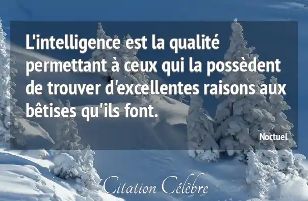 L'intelligence est la qualité permettant à ceux qui la possèdent de trouver d'excellentes raisons aux bêtises qu'ils font.
