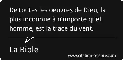 De toutes les oeuvres de Dieu, la plus inconnue à n'importe quel homme, est la trace du vent.
