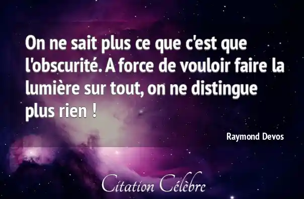 On ne sait plus ce que c'est que l'obscurité. A force de vouloir faire la lumière sur tout, on ne distingue plus rien !