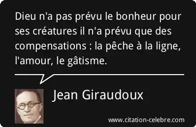 Dieu n'a pas prévu le bonheur pour ses créatures il n'a prévu que des compensations : la pêche à la ligne, l'amour, le gâtisme.