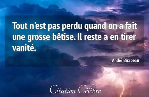 Tout n'est pas perdu quand on a fait une grosse bêtise. Il reste a en tirer vanité.