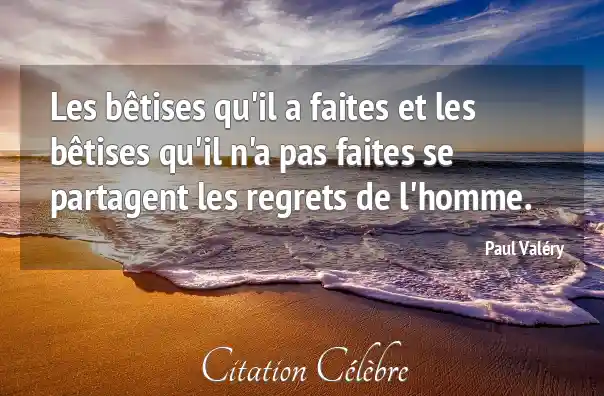 Les bêtises qu'il a faites et les bêtises qu'il n'a pas faites se partagent les regrets de l'homme.