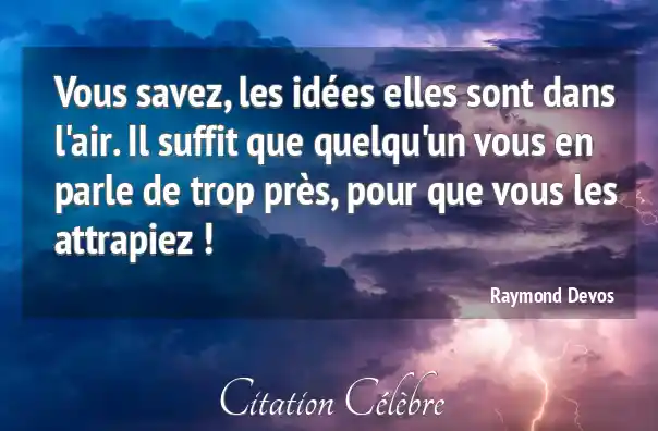 Vous savez, les idées elles sont dans l'air. Il suffit que quelqu'un vous en parle de trop près, pour que vous les attrapiez !