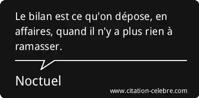 Le bilan est ce qu'on dépose, en affaires, quand il n'y a plus rien à ramasser.