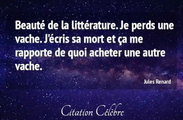 Beauté de la littérature. Je perds une vache. J'écris sa mort et ça me rapporte de quoi acheter une autre vache.