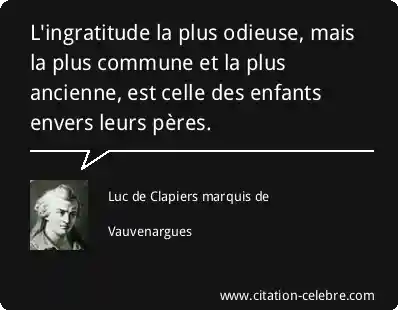 L'ingratitude la plus odieuse, mais la plus commune et la plus ancienne, est celle des enfants envers leurs pères.