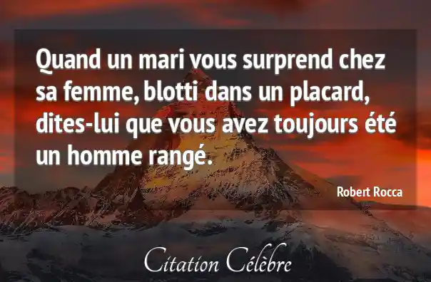Quand un mari vous surprend chez sa femme, blotti dans un placard, dites-lui que vous avez toujours été un homme rangé.