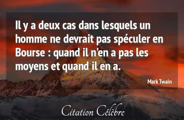 Il y a deux cas dans lesquels un homme ne devrait pas spéculer en Bourse : quand il n'en a pas les moyens et quand il en a.