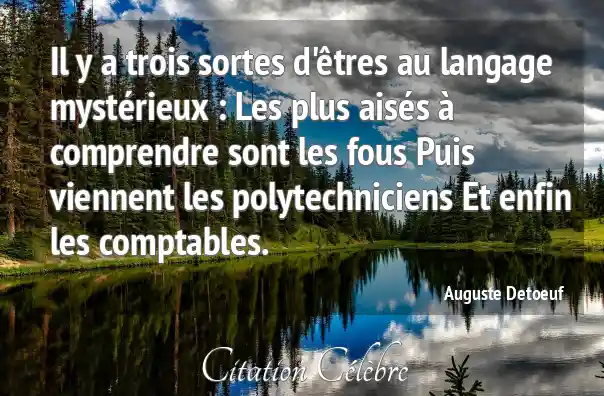 Il y a trois sortes d'êtres au langage mystérieux : Les plus aisés à comprendre sont les fous Puis viennent les polytechniciens Et enfin les comptables.