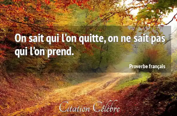 On sait qui l'on quitte, on ne sait pas qui l'on prend.