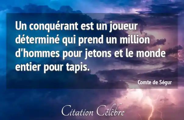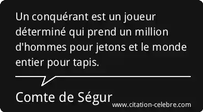 Un conquérant est un joueur déterminé qui prend un million d'hommes pour jetons et le monde entier pour tapis.