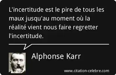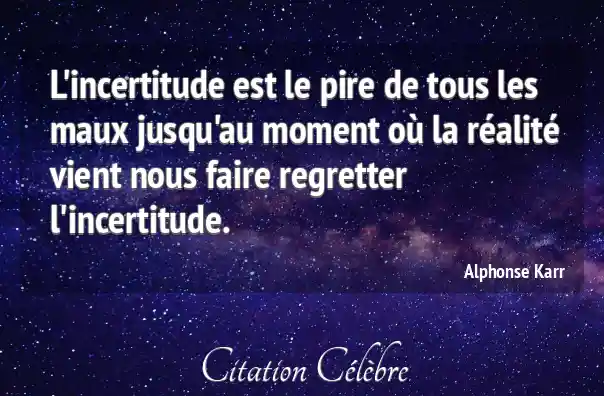 L'incertitude est le pire de tous les maux jusqu'au moment où la réalité vient nous faire regretter l'incertitude.