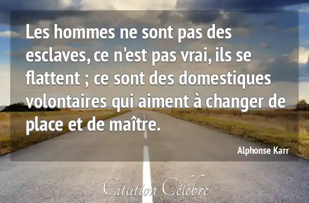Les hommes ne sont pas des esclaves, ce n'est pas vrai, ils se flattent ; ce sont des domestiques volontaires qui aiment à changer de place et de maître.