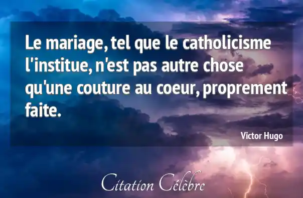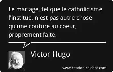 Le mariage, tel que le catholicisme l'institue, n'est pas autre chose qu'une couture au coeur, proprement faite.