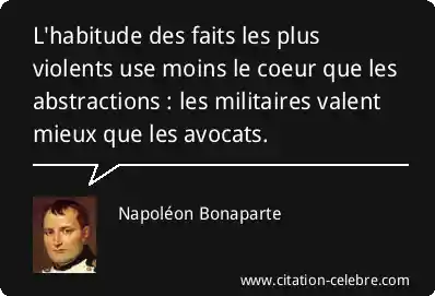 L'habitude des faits les plus violents use moins le coeur que les abstractions : les militaires valent mieux que les avocats.