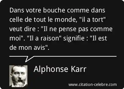 Dans votre bouche comme dans celle de tout le monde, "il a tort" veut dire : "Il ne pense pas comme moi". "Il a raison" signifie : "Il est de mon avis".