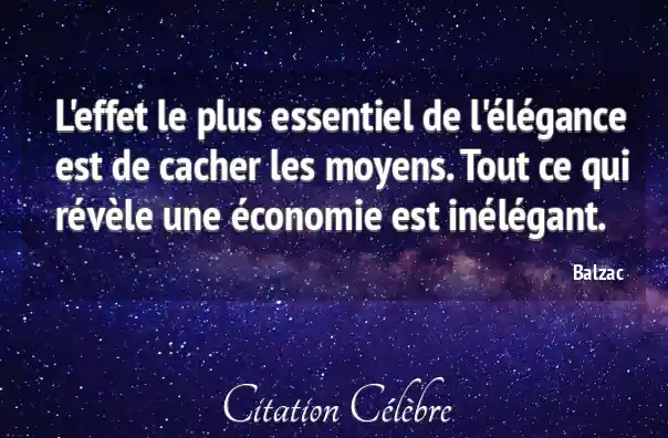 L'effet le plus essentiel de l'élégance est de cacher les moyens. Tout ce qui révèle une économie est inélégant.