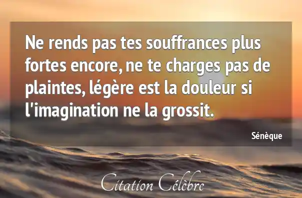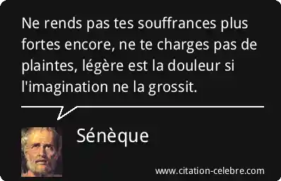 Ne rends pas tes souffrances plus fortes encore, ne te charges pas de plaintes, légère est la douleur si l'imagination ne la grossit.