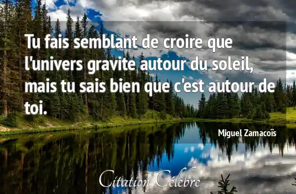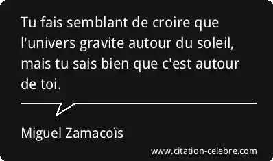 Tu fais semblant de croire que l'univers gravite autour du soleil, mais tu sais bien que c'est autour de toi.