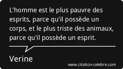 L'homme est le plus pauvre des esprits, parce qu'il possède un corps, et le plus triste des animaux, parce qu'il possède un esprit.