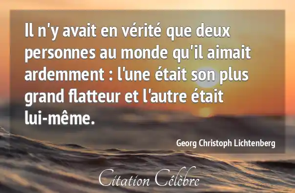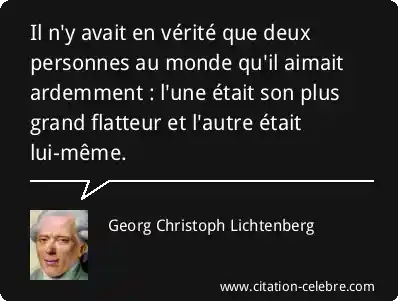 Il n'y avait en vérité que deux personnes au monde qu'il aimait ardemment : l'une était son plus grand flatteur et l'autre était lui-même.