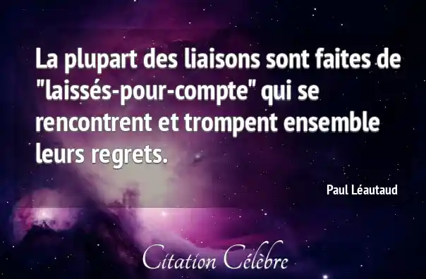 La plupart des liaisons sont faites de "laissés-pour-compte" qui se rencontrent et trompent ensemble leurs regrets.