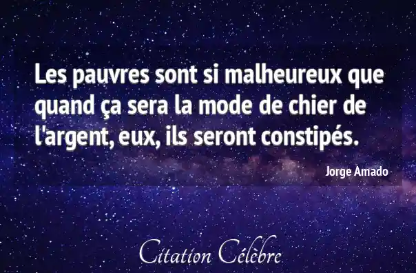 Les pauvres sont si malheureux que quand ça sera la mode de chier de l'argent, eux, ils seront constipés.