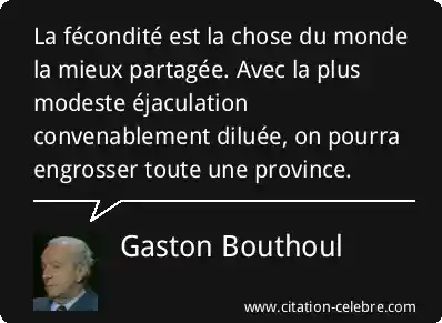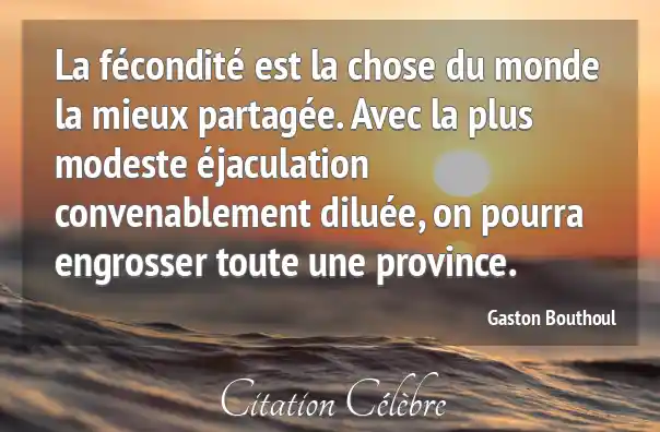 La fécondité est la chose du monde la mieux partagée. Avec la plus modeste éjaculation convenablement diluée, on pourra engrosser toute une province.