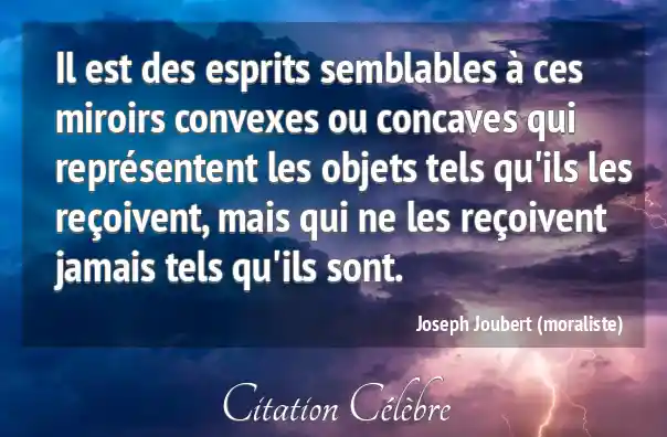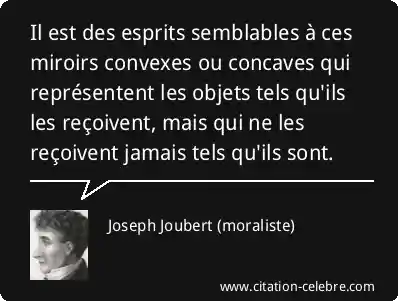 Il est des esprits semblables à ces miroirs convexes ou concaves qui représentent les objets tels qu'ils les reçoivent, mais qui ne les reçoivent jamais tels qu'ils sont.