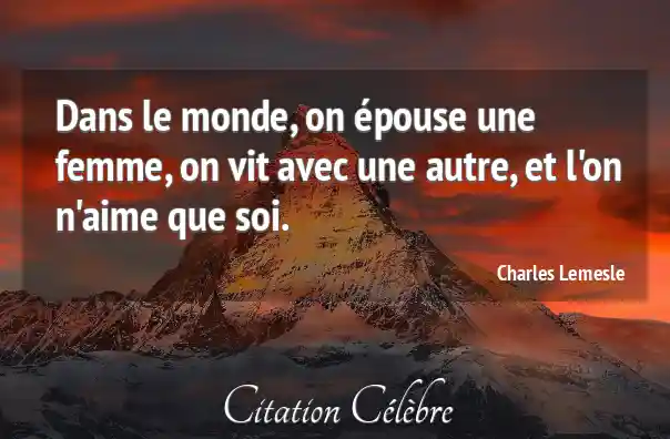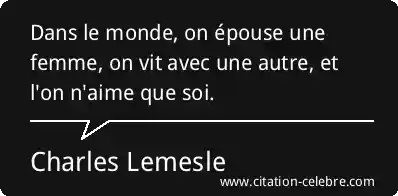 Dans le monde, on épouse une femme, on vit avec une autre, et l'on n'aime que soi.