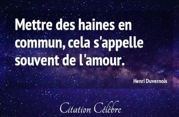 Mettre des haines en commun, cela s'appelle souvent de l'amour.