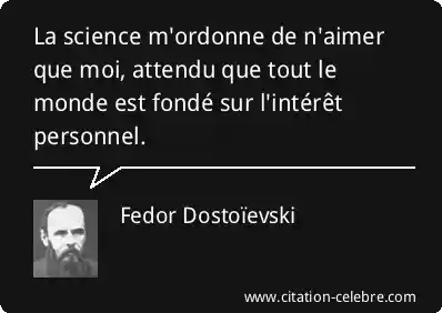 La science m'ordonne de n'aimer que moi, attendu que tout le monde est fondé sur l'intérêt personnel.