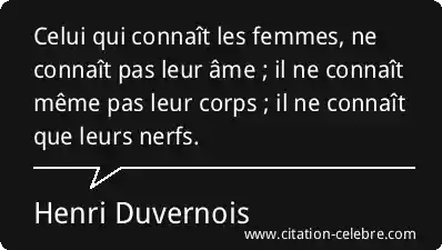Celui qui connaît les femmes, ne connaît pas leur âme ; il ne connaît même pas leur corps ; il ne connaît que leurs nerfs.
